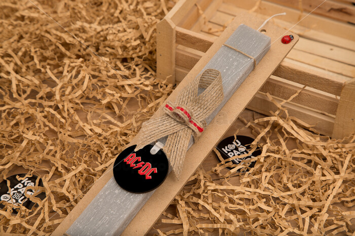 AC/DC, Easter Set, wooden keychain & scented Easter candle flat (30cm) (GRAY)