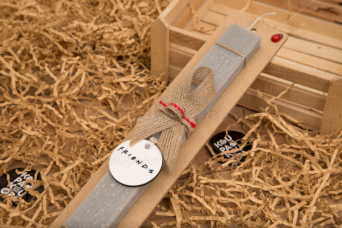 Friends, Easter Set, wooden keychain & scented Easter candle flat (30cm) (GRAY)