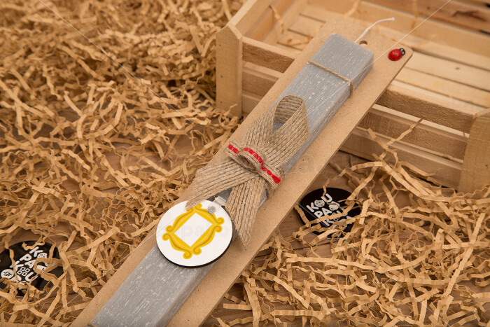Friends frame, Easter Set, wooden keychain & scented Easter candle flat (30cm) (GRAY)