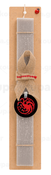 GOT House Targaryen, Fire Blood, Easter Set, wooden keychain & scented Easter candle flat (30cm) (GRAY)