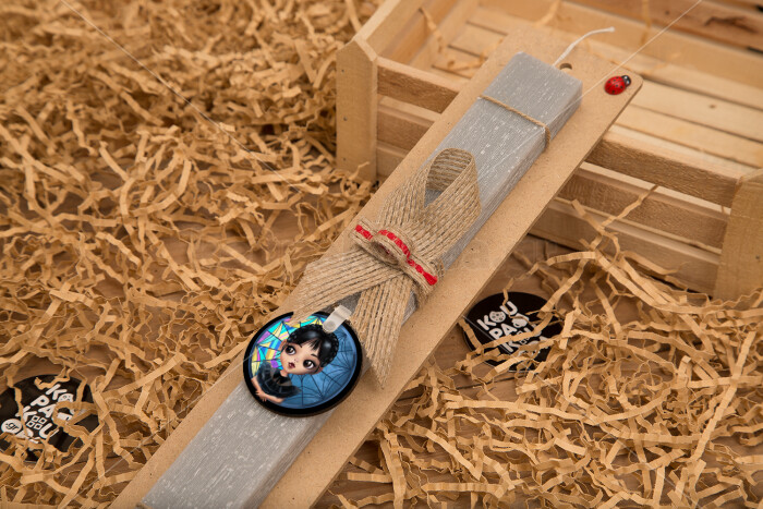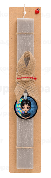 Wednesday big eyes, Easter Set, wooden keychain & scented Easter candle flat (30cm) (GRAY)