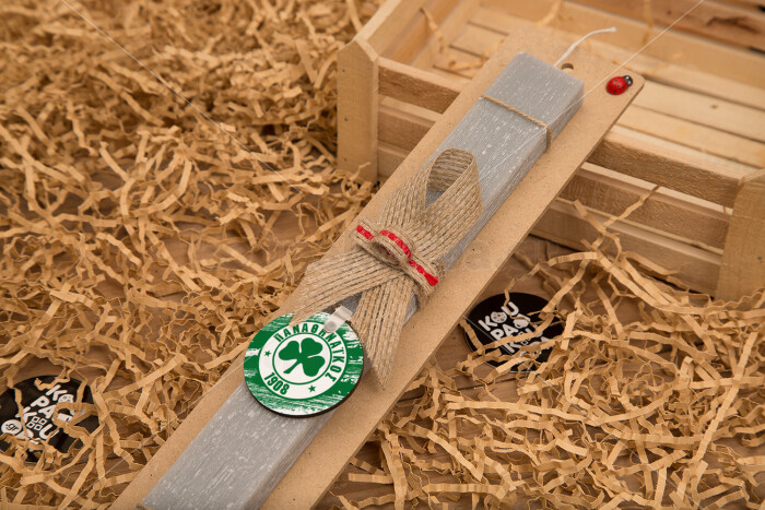 Π.Α.Ο., Easter Set, wooden keychain & scented Easter candle flat (30cm) (GRAY)
