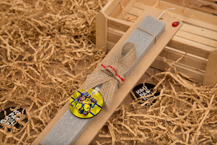 Cristiano Ronaldo Al Nassr, Easter Set, wooden keychain & scented Easter candle flat (30cm) (GRAY)