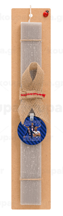 Kylian Mbappé, Easter Set, wooden keychain & scented Easter candle flat (30cm) (GRAY)