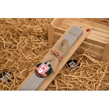 Olympiacos B.C., Easter Set, wooden keychain & scented Easter candle flat (30cm) (GRAY)