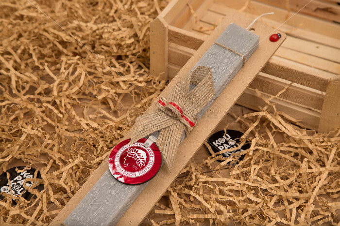 Olympiacos F.C., Easter Set, wooden keychain & scented Easter candle flat (30cm) (GRAY)