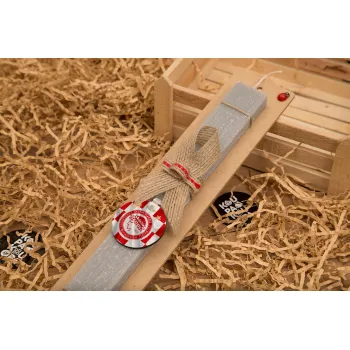Olympiakos flag, Easter Set, wooden keychain & scented Easter candle flat (30cm) (GRAY)