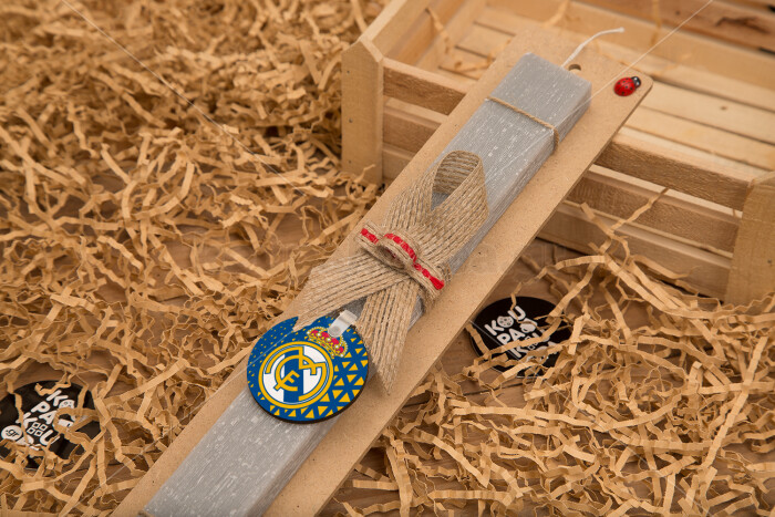 Real Madrid CF, Easter Set, wooden keychain & scented Easter candle flat (30cm) (GRAY)