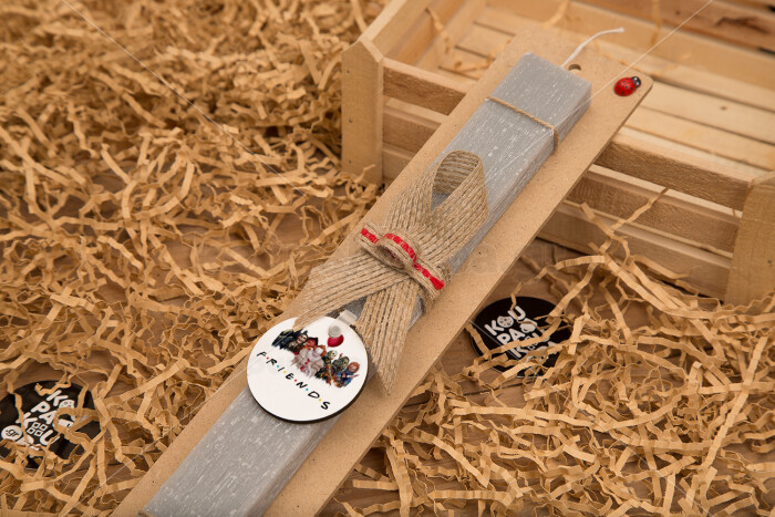Halloween Friends, Easter Set, wooden keychain & scented Easter candle flat (30cm) (GRAY)