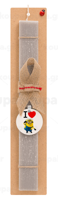 I love by minion, Easter Set, wooden keychain & scented Easter candle flat (30cm) (GRAY)