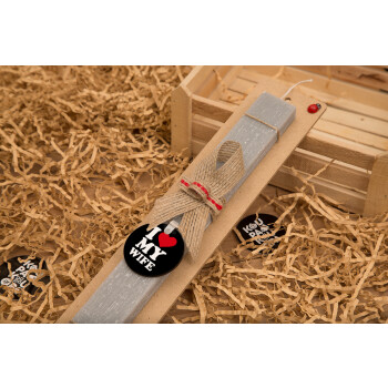 I Love my Wife, Easter Set, wooden keychain & scented Easter candle flat (30cm) (GRAY)