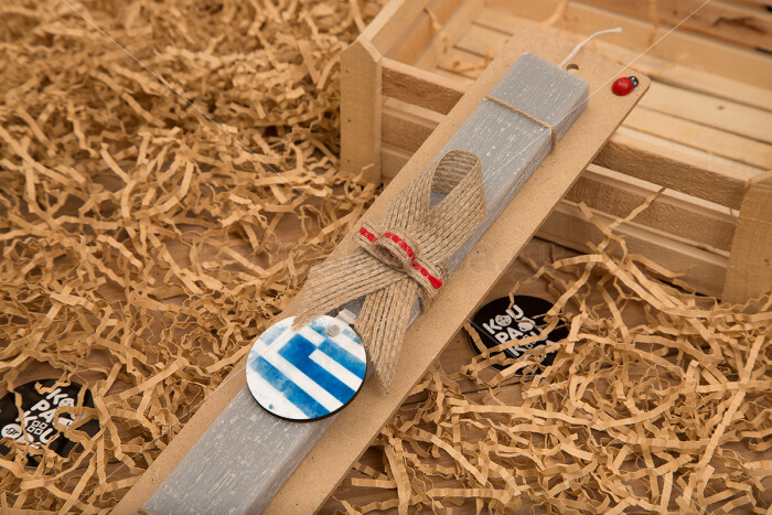Ελληνική σημαία watercolor, Easter Set, wooden keychain & scented Easter candle flat (30cm) (GRAY)