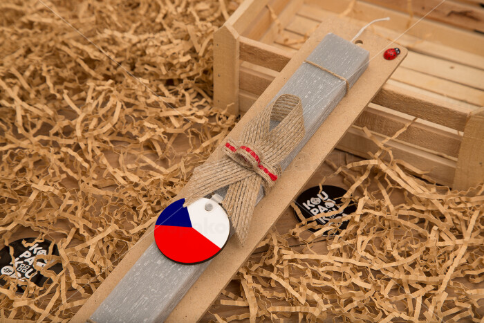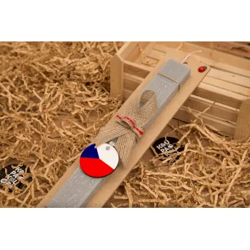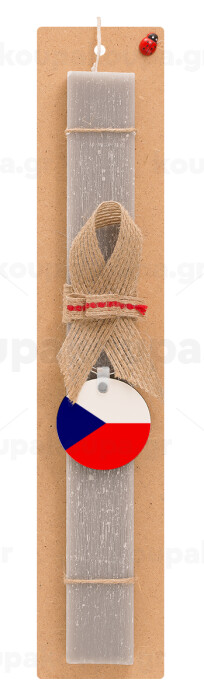 Czechia flag, Easter Set, wooden keychain & scented Easter candle flat (30cm) (GRAY)