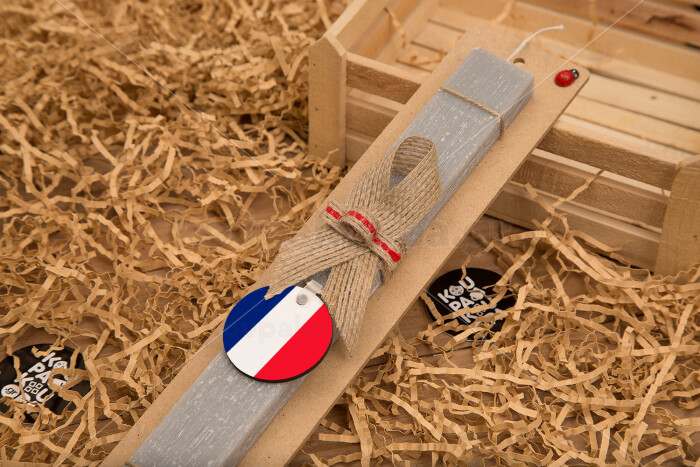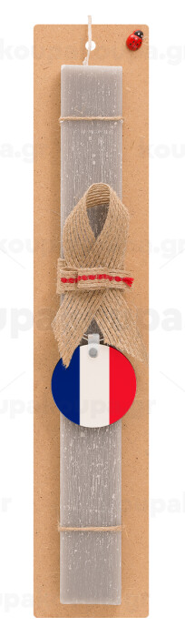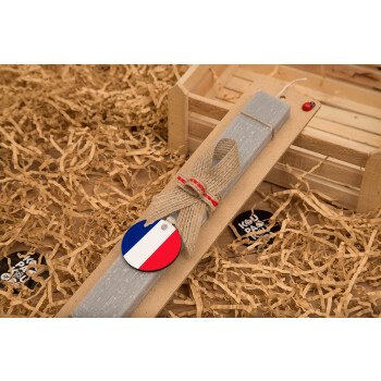 France flag, Easter Set, wooden keychain & scented Easter candle flat (30cm) (GRAY)