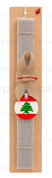 Lebanon flag, Easter Set, wooden keychain & scented Easter candle flat (30cm) (GRAY)
