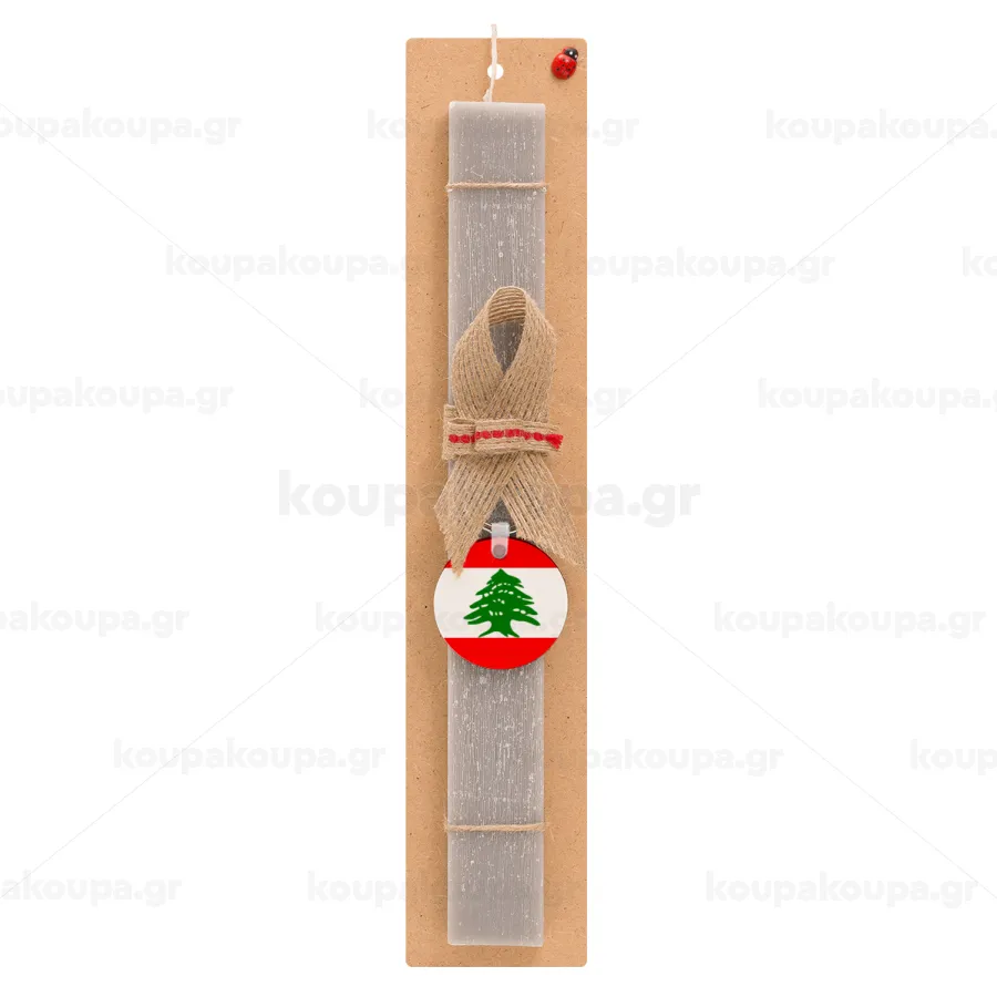 Lebanon flag, Easter Set, wooden keychain & scented Easter candle flat (30cm) (GRAY)