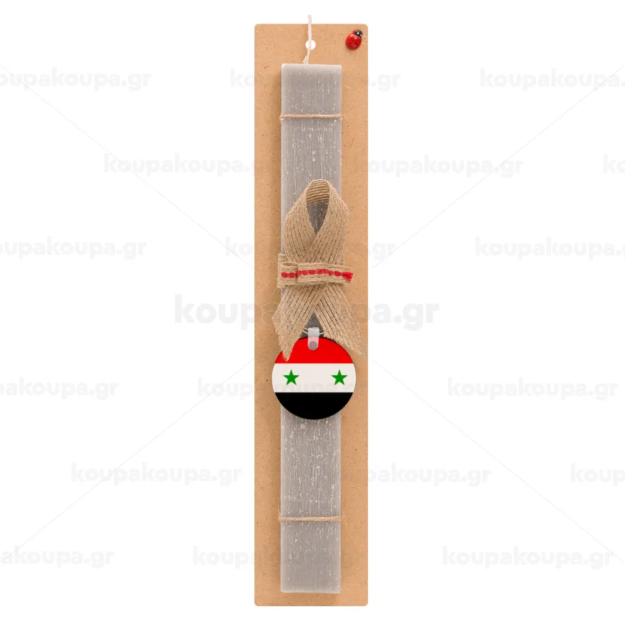 Syria flag, Easter Set, wooden keychain & scented Easter candle flat (30cm) (GRAY)