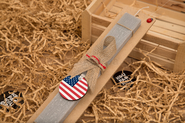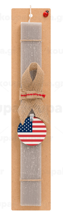 USA flag, Easter Set, wooden keychain & scented Easter candle flat (30cm) (GRAY)