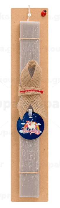Μονόκερος, Easter Set, wooden keychain & scented Easter candle flat (30cm) (GRAY)