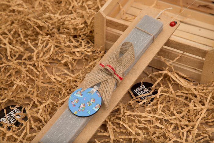 Unicorn pattern, Easter Set, wooden keychain & scented Easter candle flat (30cm) (GRAY)
