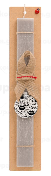Γάτες, Easter Set, wooden keychain & scented Easter candle flat (30cm) (GRAY)