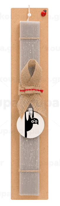 Cat upside down, Easter Set, wooden keychain & scented Easter candle flat (30cm) (GRAY)
