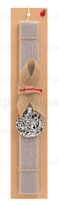 DOG pattern, Easter Set, wooden keychain & scented Easter candle flat (30cm) (GRAY)