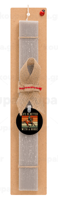 Life is Better with a Horse, Easter Set, wooden keychain & scented Easter candle flat (30cm) (GRAY)