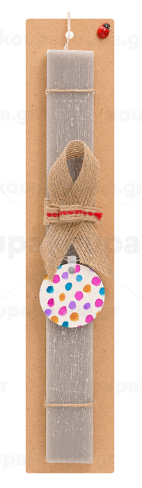 Watercolor dots, Easter Set, wooden keychain & scented Easter candle flat (30cm) (GRAY)