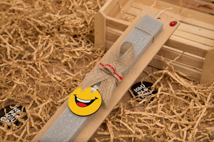 Φατσούλα γελάω!!!, Easter Set, wooden keychain & scented Easter candle flat (30cm) (GRAY)