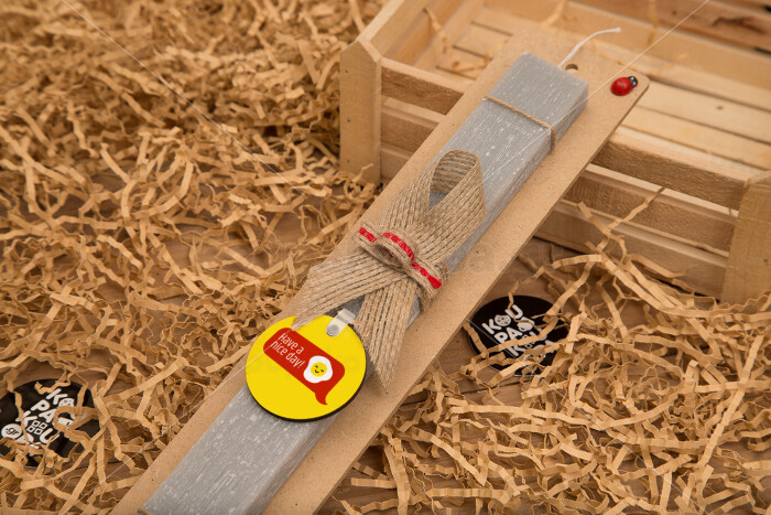 Have a nice day Emoji, Easter Set, wooden keychain & scented Easter candle flat (30cm) (GRAY)