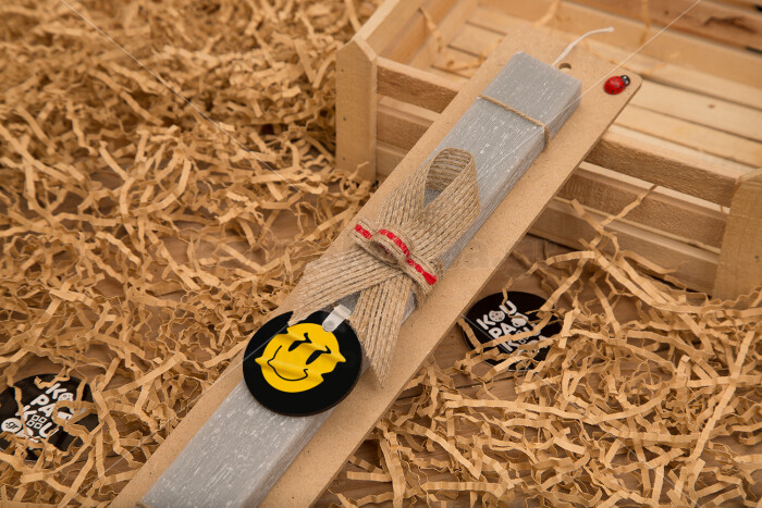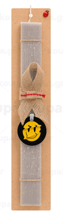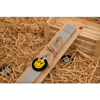 Smile avatar distrorted, Easter Set, wooden keychain & scented Easter candle flat (30cm) (GRAY)