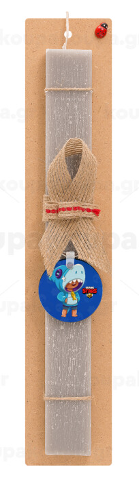 Brawl Stars Leon Shark, Easter Set, wooden keychain & scented Easter candle flat (30cm) (GRAY)