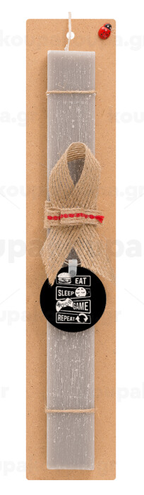 Eat Sleep Game Repeat, Easter Set, wooden keychain & scented Easter candle flat (30cm) (GRAY)