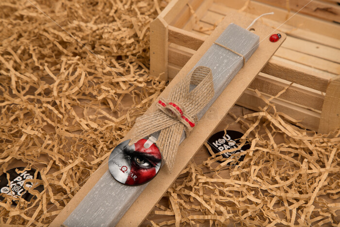 God of war Stratos, Easter Set, wooden keychain & scented Easter candle flat (30cm) (GRAY)