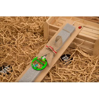 Minecraft characters, Easter Set, wooden keychain & scented Easter candle flat (30cm) (GRAY)