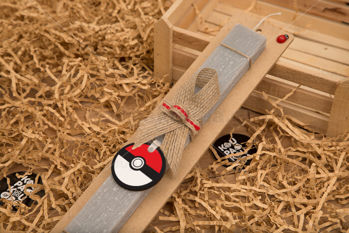 Pokemon ball, Easter Set, wooden keychain & scented Easter candle flat (30cm) (GRAY)