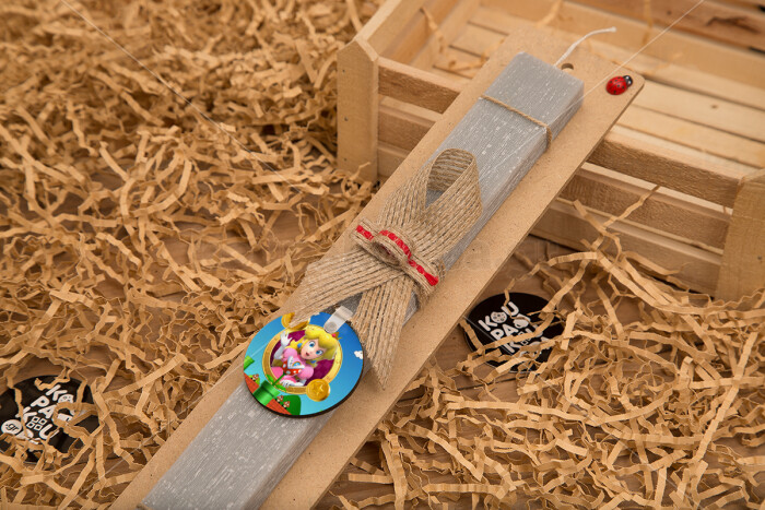 Princess Peach Toadstool, Easter Set, wooden keychain & scented Easter candle flat (30cm) (GRAY)