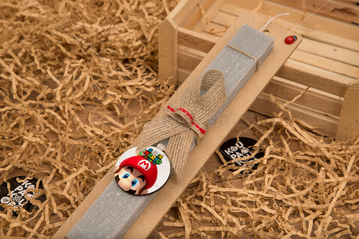 Super mario head, Easter Set, wooden keychain & scented Easter candle flat (30cm) (GRAY)