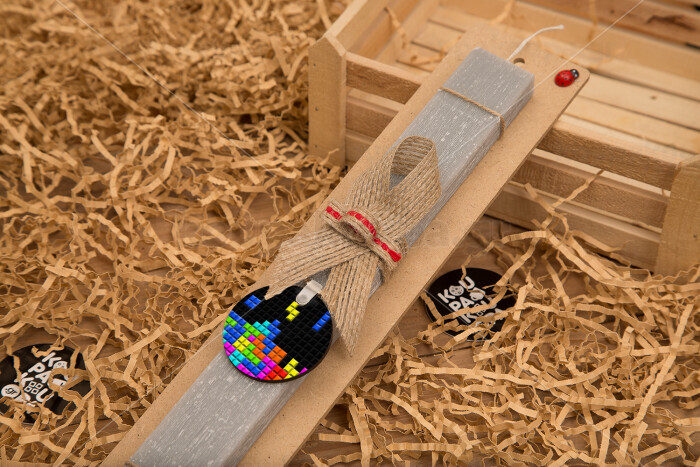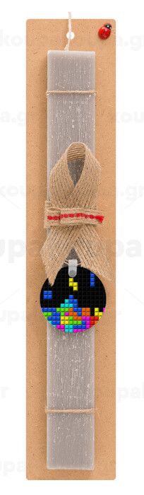 Tetris blocks, Easter Set, wooden keychain & scented Easter candle flat (30cm) (GRAY)