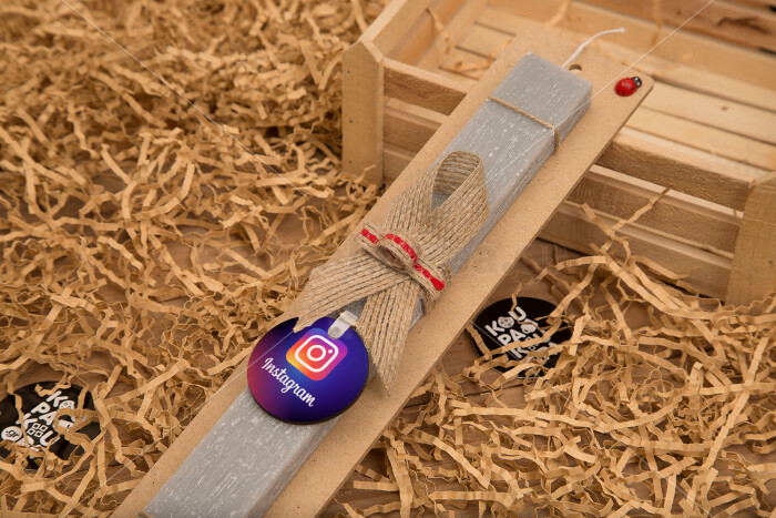 Instagram, Easter Set, wooden keychain & scented Easter candle flat (30cm) (GRAY)