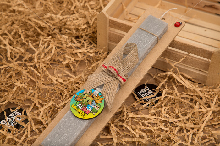 Italian Brainrot friends, Easter Set, wooden keychain & scented Easter candle flat (30cm) (GRAY)