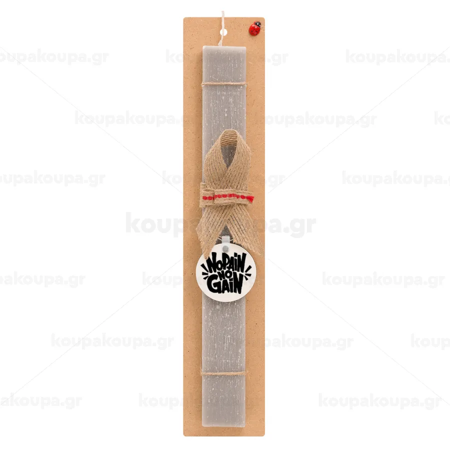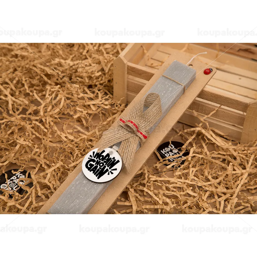 No pain no gain, Easter Set, wooden keychain & scented Easter candle flat (30cm) (GRAY)