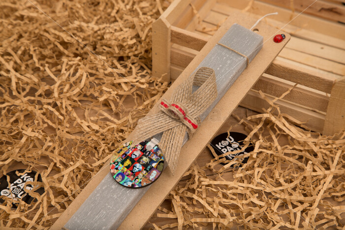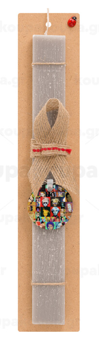Warhol pop art, Easter Set, wooden keychain & scented Easter candle flat (30cm) (GRAY)
