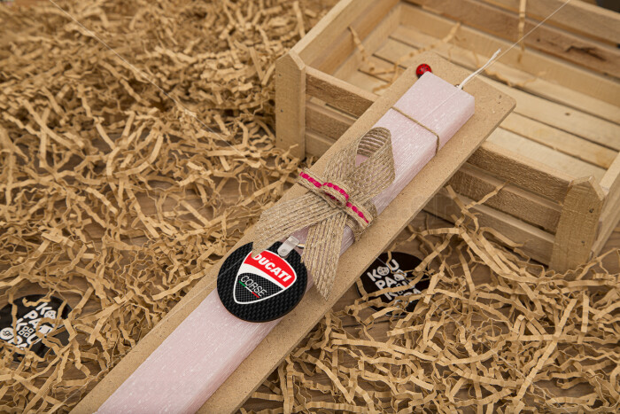 Ducati, Easter Set, wooden keychain & scented flat Easter candle (30cm) (PINK)