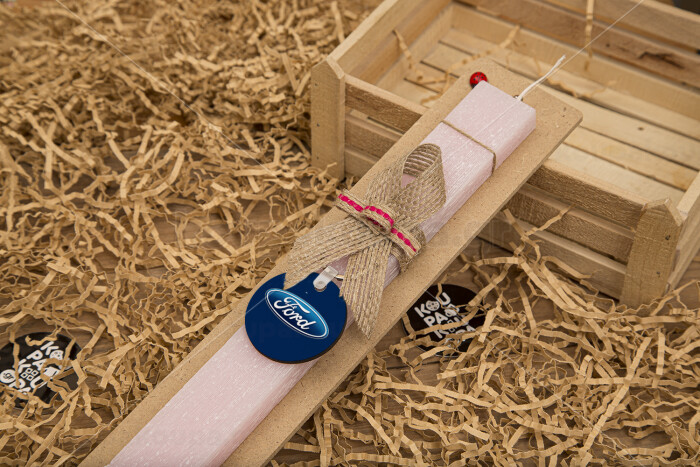 Ford, Easter Set, wooden keychain & scented flat Easter candle (30cm) (PINK)