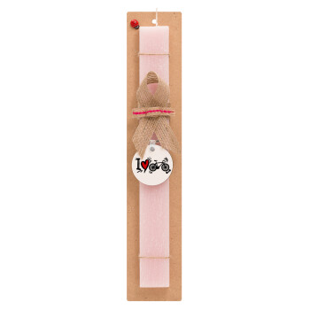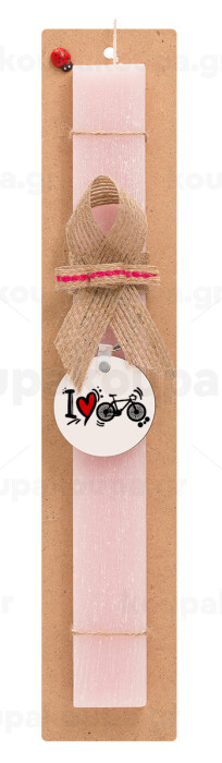 I love my bike, Easter Set, wooden keychain & scented flat Easter candle (30cm) (PINK)