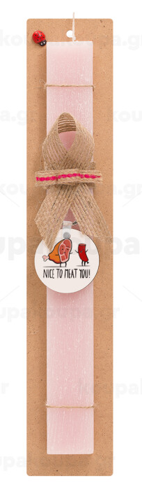 Nice to MEAT you, Easter Set, wooden keychain & scented flat Easter candle (30cm) (PINK)