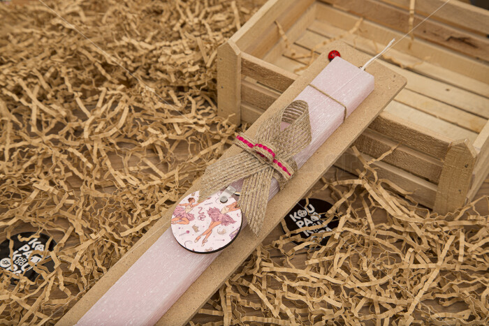 Ballet Dancer, Easter Set, wooden keychain & scented flat Easter candle (30cm) (PINK)