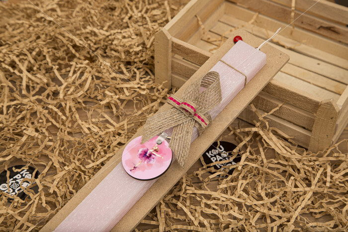 Ballerina watercolor, Easter Set, wooden keychain & scented flat Easter candle (30cm) (PINK)